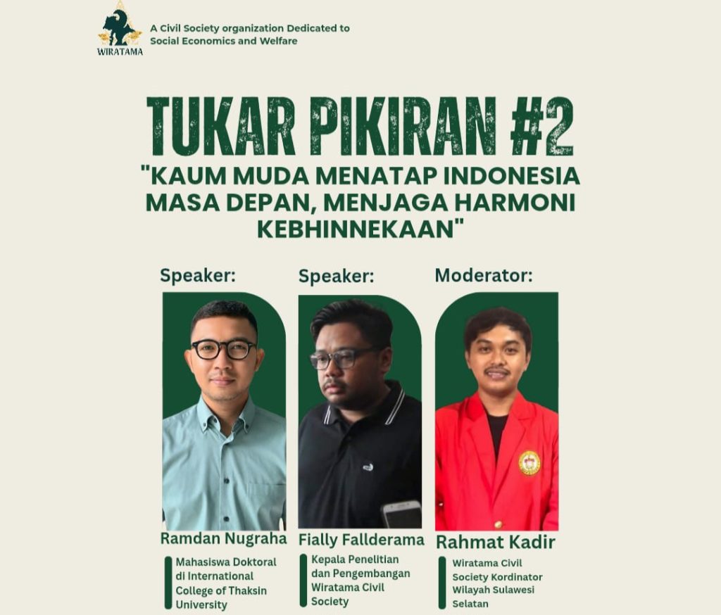 Jakarta – Wiratama CS kembali menghadirkan forum diskusi publik bertajuk “Tukar Pikiran”. Edisi kedua ini mengangkat tema yang relevan dan krusial: “Kaum Muda Menatap Indonesia Masa Depan, Menjaga Harmoni Kebhinekaan”. Diskusi ini bertujuan menyediakan ruang refleksi dan dialog konstruktif bagi generasi muda.